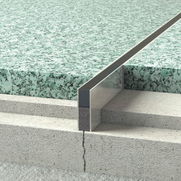 The MicrAtec EI joint is suitable as field dilation in floors with hard finishes. The brass or stainless steel profile absorbs forces caused by shrinkage, expansion due to temperature fluctuations and high traffic loads.